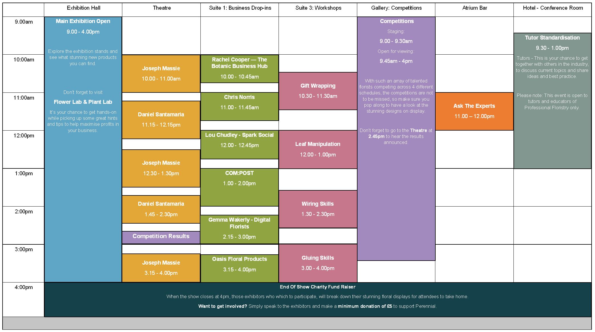 Please note: these timetables will continue to be updated as the show approaches, so don’t forget to check back before you arrive.