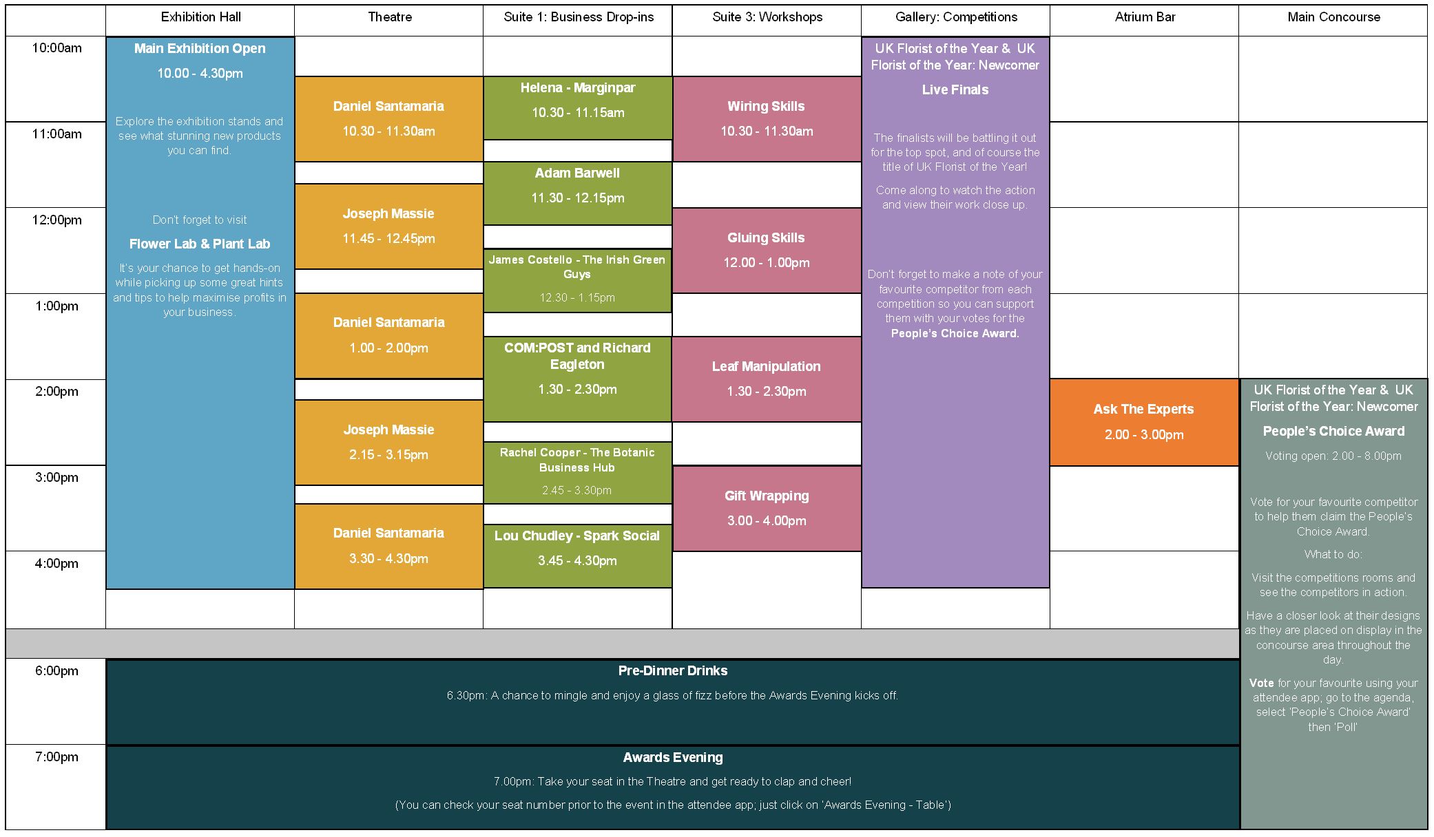 With live demonstrations, business drop-ins, competition action, interactive labs and more, there’s a lot to see, do and enjoy during FleurEx. That’s why a little planning goes a long way.